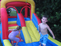 Kyle turned two years old on July 19th!!! We celebrated at Chris' parents' house with one of the items we got with the SSI money - a Bounceland Bouncer/Ball Pit/Slide Combo. It also has a waterplay feature. It was fun. Kyle was not amuzed when we attached the water spray hose, though. The neighbor's daughter, Jacqueline came over to play and Hannah's cousin Zachary came over too. We blew bubbles, too. Kyle got one balloon, with his favorite cartoon character, Pooh.